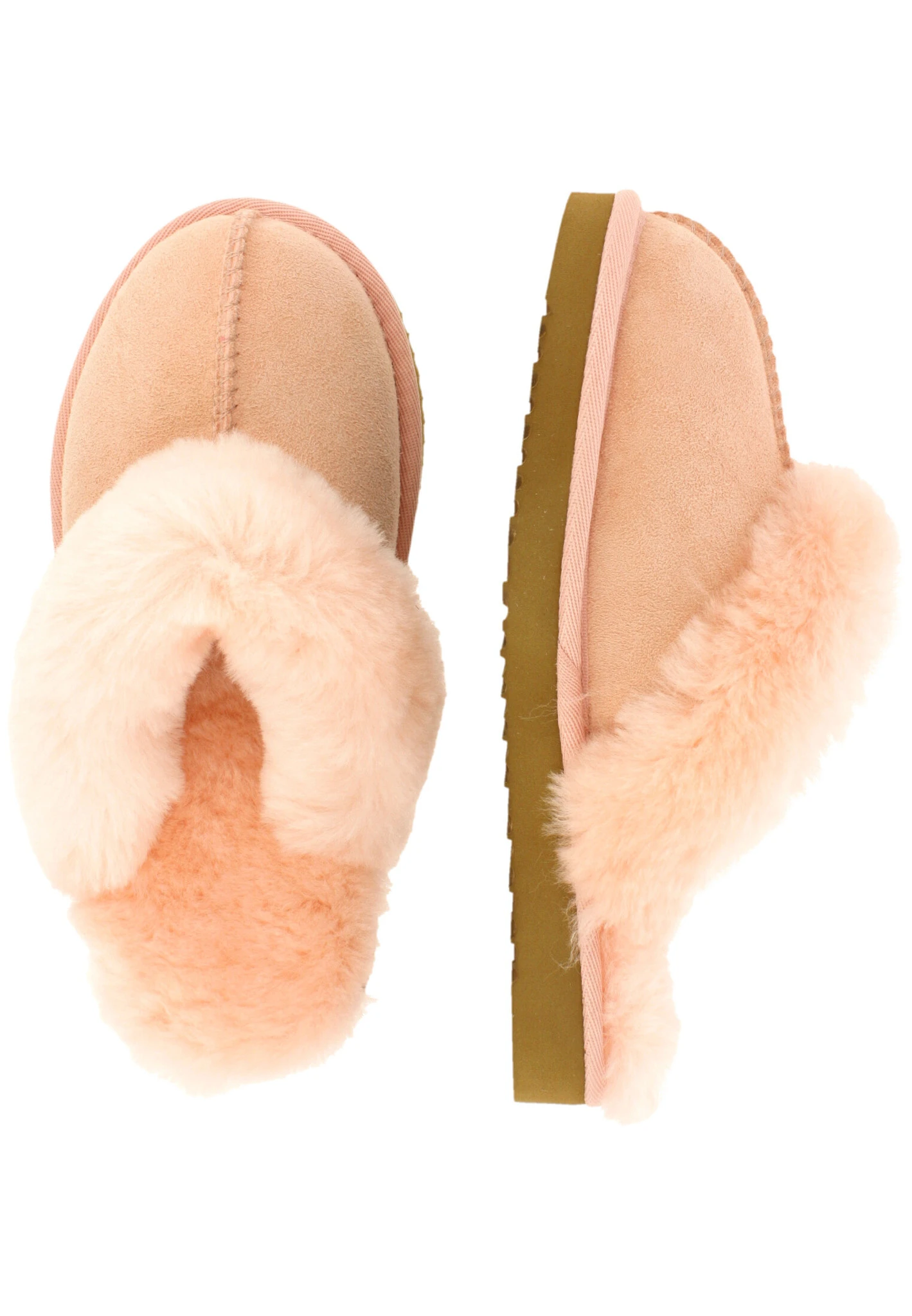 De pantoffel heeft een bovenwerk van schapenvacht. Het binnenwerk is gemaakt van schapenvacht. Daarnaast is de pantoffel makkelijk aan en uit te trekken.